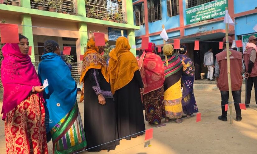 সকাল থেকে ভোটাররা ভোটকেন্দ্রে গিয়ে তাদের ভোট প্রদান করার জন্য সারিবদ্ধভাবে কেন্দ্রের সামনে লাইনে দাঁড়িয়ে ভোট দিচ্ছেন।