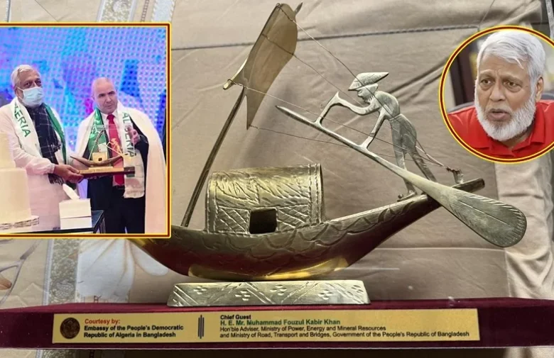 বিদ্যুৎ, জ্বালানি ও খনিজ সম্পদ মন্ত্রণালয়ের উপদেষ্টা মুহাম্মদ ফাওজুল কবির খানকে নৌকা উপহার দিয়েছেন ঢাকায় নিযুক্ত আলজেরিয়ার রাষ্ট্রদূত আবদেল ওহাব সালদানি। শনিবার (১ নভেম্বর) আলজেরিয়া বিপ্লবের ৭১তম বার্ষিকী উদযাপন অনুষ্ঠানে এই উপহার দেওয়া হয়। তবে এই উপহার নিয়ে সামাজিক যোগাযোগমাধ্যমে আলোচনা-সমালোচনা শুরু হয়।